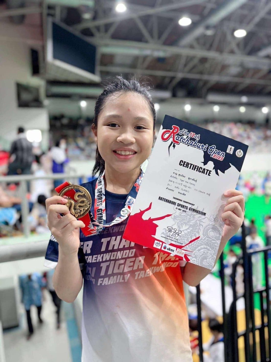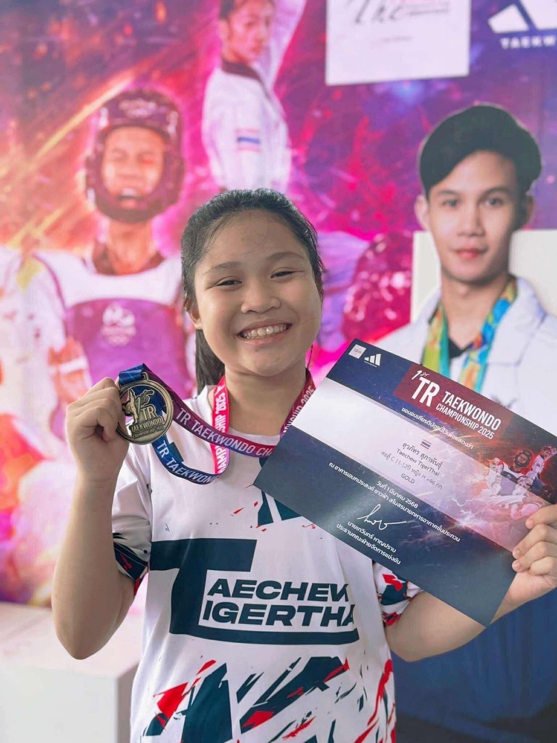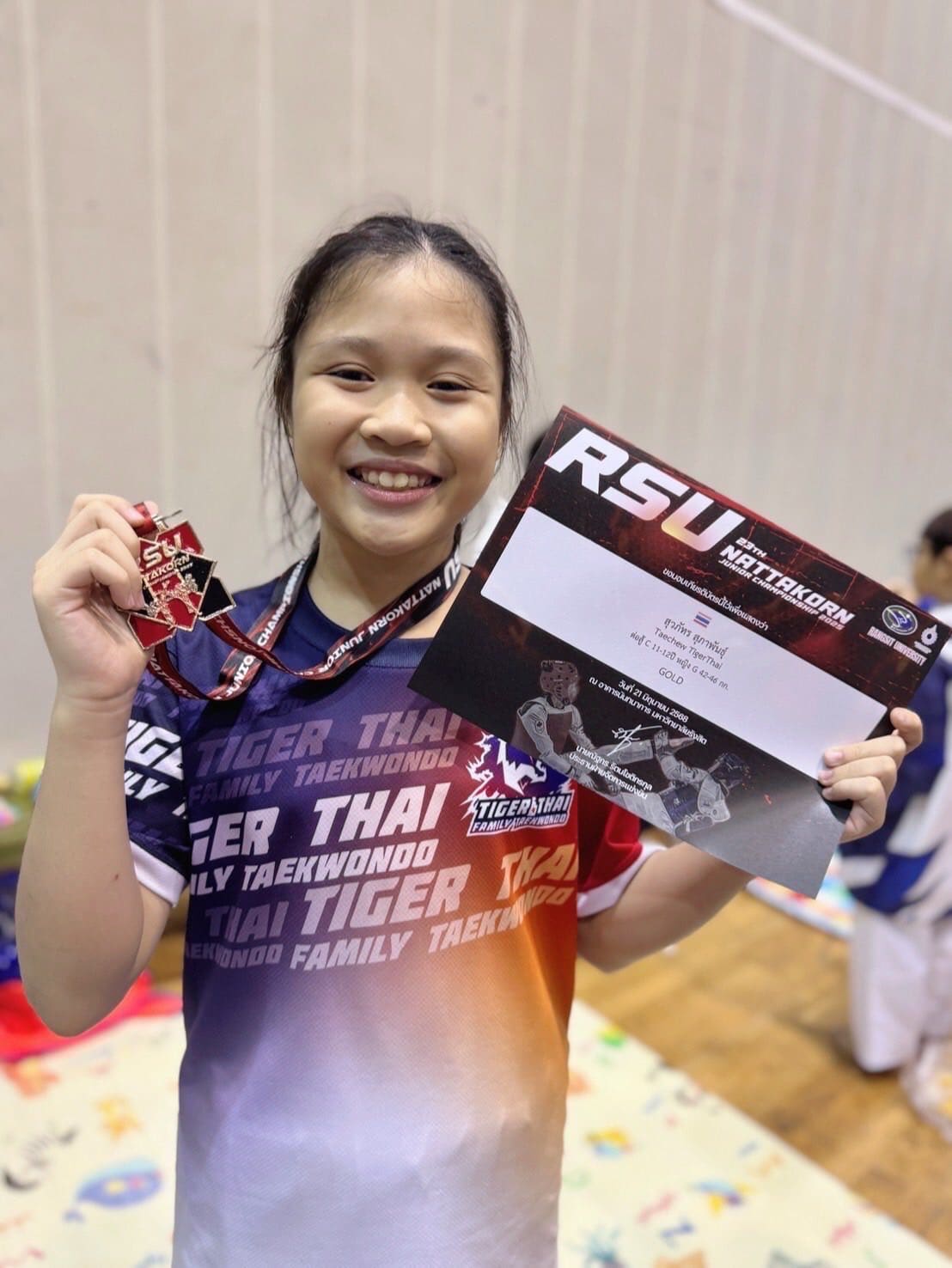 1. 🥇เหรียญทอง จากการแข่งขันรายการ 1st TR Taekwondo Championship 2025 ต่อสู้ ประเภท เดี่ยวหญิง รุ่นอายุ 11-12 ปี หญิง 46+ ระดับ class C วันที่ 1 มีนาคม 2025