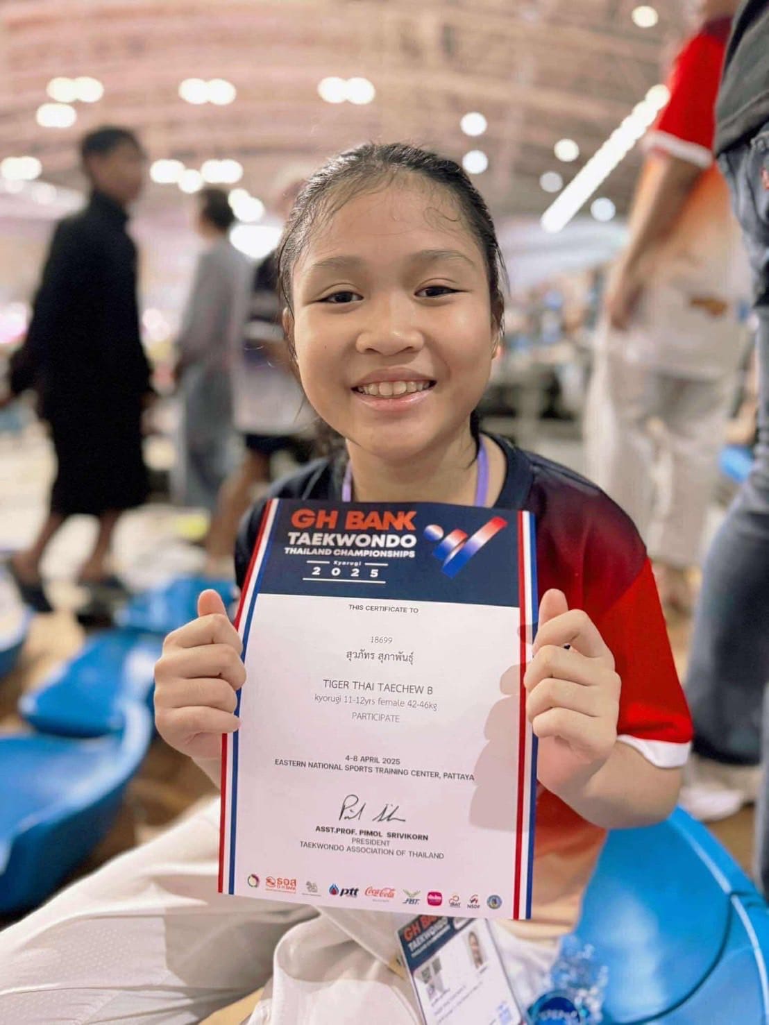 3. เข้าร่วมแข่งขันรายการ GH BANK Taekwondo Thailand Championships 2025 ต่อสู้ ประเภท เดี่ยวหญิง รุ่นอายุ 11-12 ปี หญิง 42-46 กก. ระดับ class A วันที่ 5 เมษายน 2025