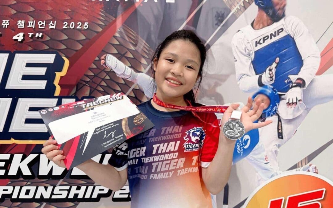 2. 🥈เหรียญเงิน จากการแข่งขันรายการ The 4th Taechew Taekwondo Championship 2025 ต่อสู้ ประเภท เดี่ยวหญิง รุ่นอายุ 11-12 ปี หญิง 42-46 กก. ระดับ class B วันที่ 15 มีนาคม 2025