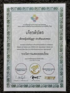 รางวัล International Cultural Art Festival of Sino-Thai “การแสดงยอดเยี่ยม”