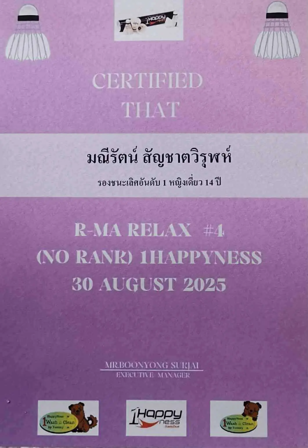 เด็กหญิงมณีรัตน์ สัญชาตวิรุฬห์ (หนูมณี) ชั้นมัธยมศึกษาปีที่ 2 by Yossarun Rachoopimol | Sep 4, 2025 | ข่าวสาร, นักเรียนภูมิใจ-ศิษย์ปัจจุบัน-2025 ขอแสดงความยินดีกับนักเรียนโรงเรียนประสาทวิทยานนทบุรีของเรา เด็กหญิงมณีรัตน์ สัญชาตวิรุฬห์ (หนูมณี) ชั้นมัธยมศึกษาปีที่ 2 รองชนะเลิศอันดับ 1 หญิงเดี่ยว 14 ปี BADMINTON 2025 R-MA RELAX #4 วันที่ 30 สิงหาคม 2568 VENUE : สนาม R-MA BADMINTON คุณครูขอยินดีกับประสบการณ์ที่ดีของน้องในครั้งนี้ค่ะ PSV: Multiple Intelligences School #psvschool #prasartvidnon #prasartvidhyanonthaburischool #innovativeboutiqueschool #multipleintelligenceschool #โรงเรียนแนวพหุปัญญา