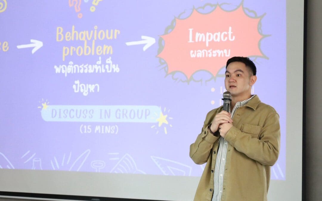 Prasartvidhyanonthaburi School organized a professional development workshop for teachers, TAs and educational staff on the topic “Managing Challenging Behavior in School Settings.” This training was led by Lt. Col. Supat Totab, the school psychologist, who facilitated the session as our coach.
